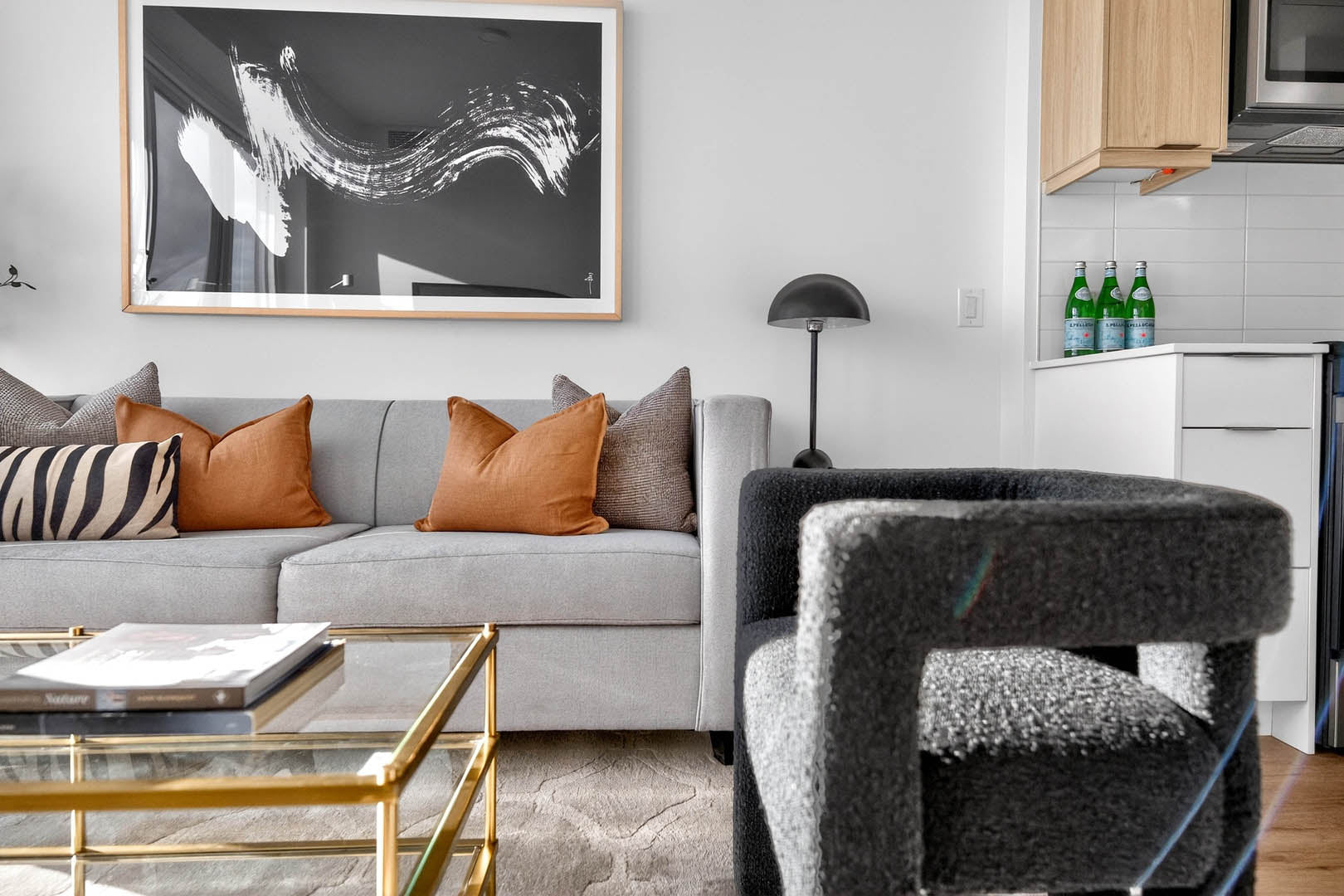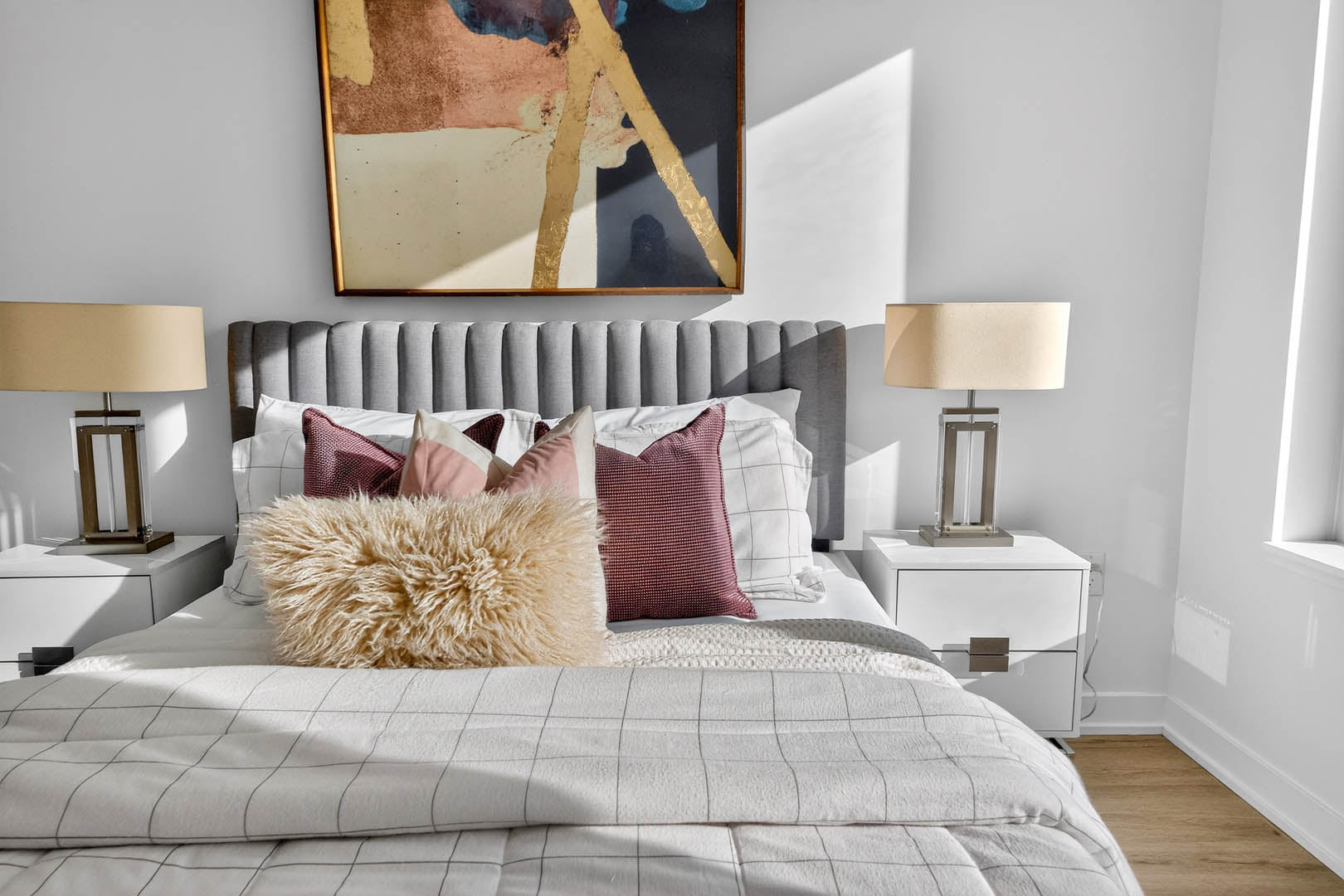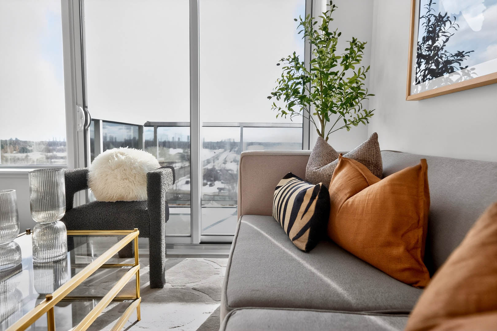 This two-bedroom condo in Etobicoke was all about maximizing every square foot without making it feel crowded. We created a smart, intentional layout that defined each zone clearly while keeping sightlines open and light-filled. Clean-lined furniture was scaled carefully for the space, layered with warm textures and subtle contrast to add depth and interest. Thoughtful styling—art placement, soft textiles, and minimal but impactful accessories—helped elevate the condo into an aspirational urban home. The result is a space that feels polished, functional, and far larger than its footprint suggests.