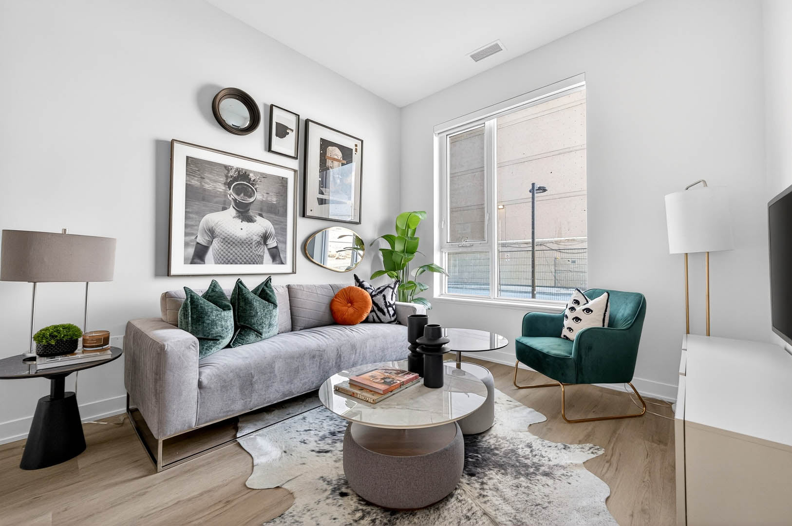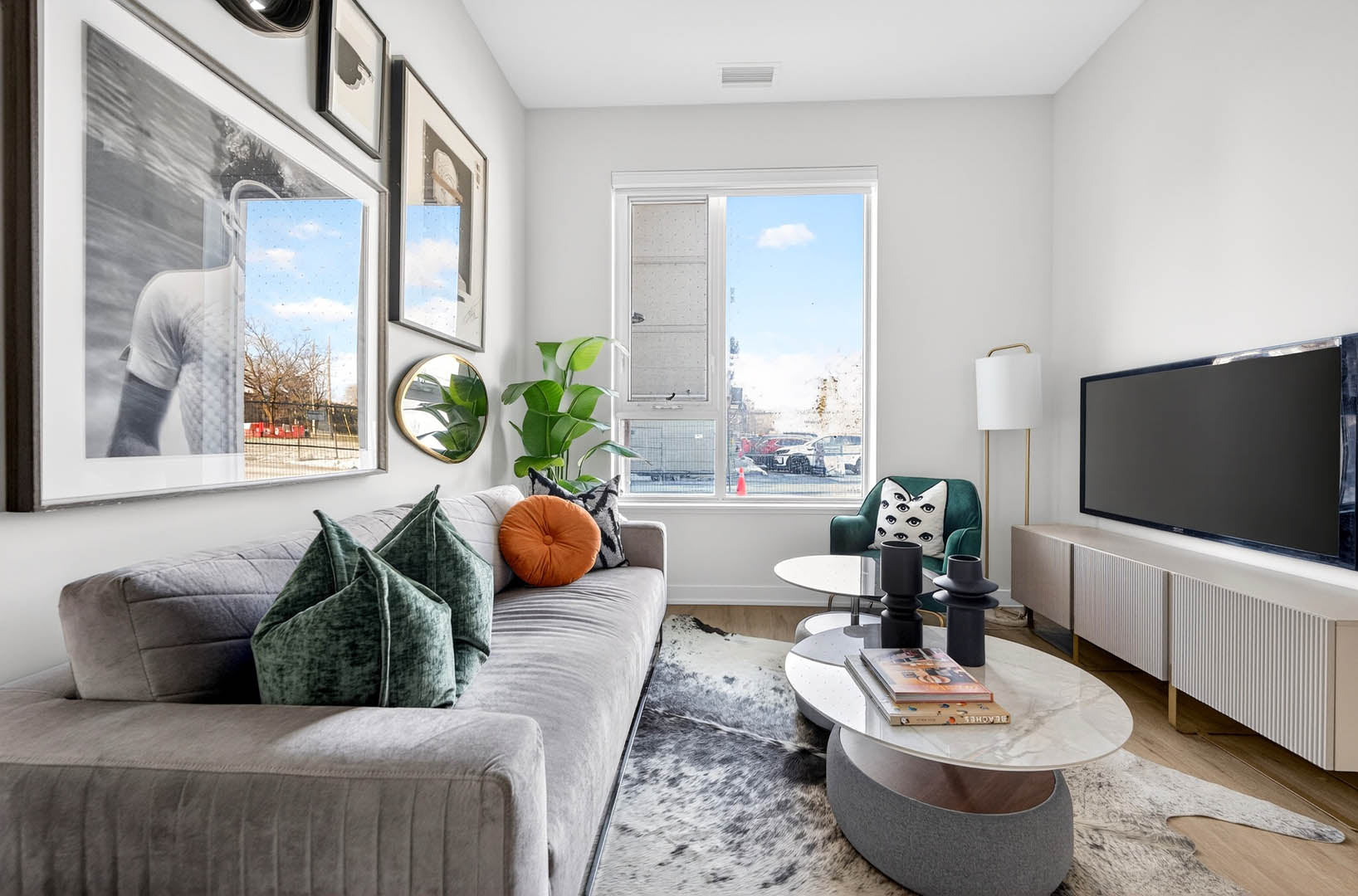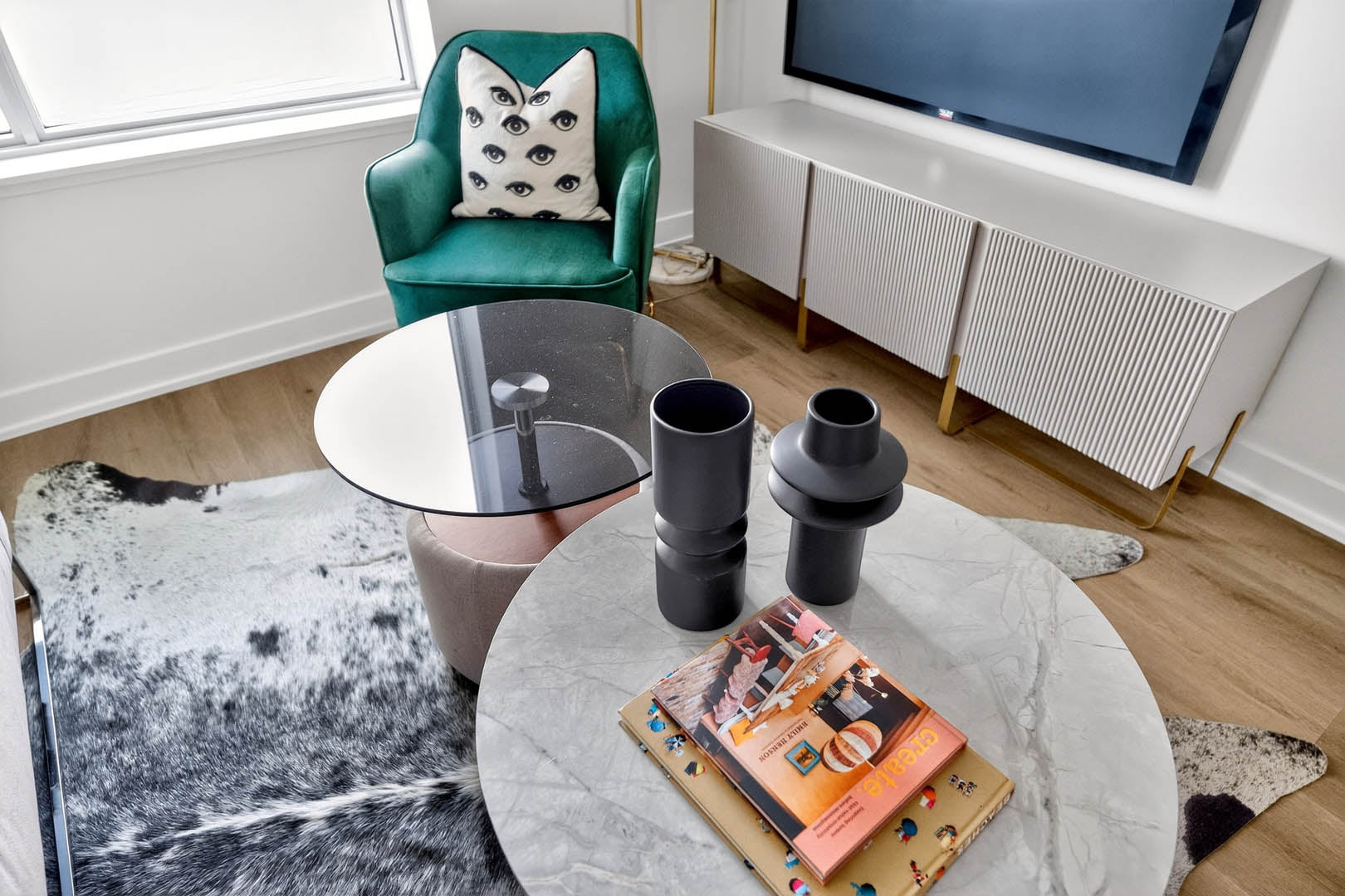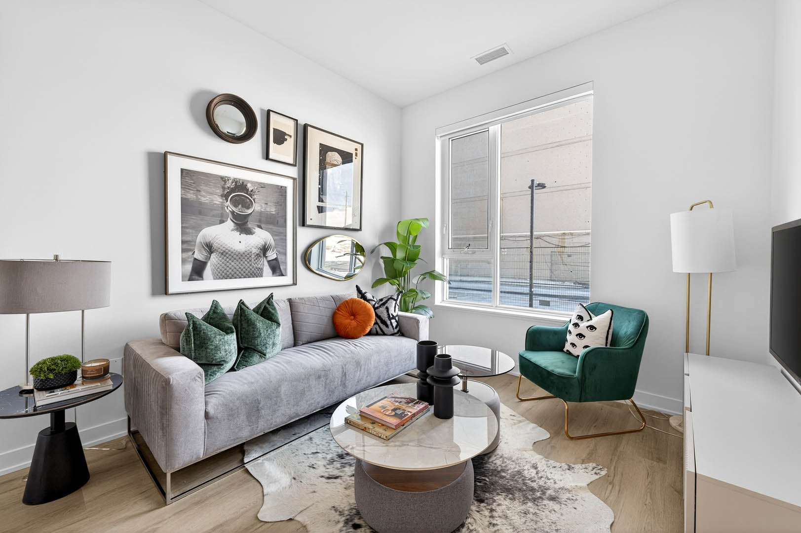 Designed for Minto Apartments, this 2-bedroom model suite in Mississauga was created with young professionals in mind. A clean, modern foundation is elevated with intentional pops of colour, contemporary artwork, and sculptural accessories that bring energy and personality into the space. Furniture is scaled for everyday living, balancing comfort and function while keeping the layout feeling open and effortless. The result is a fresh, design-forward home that feels polished, vibrant, and ready for modern urban life.