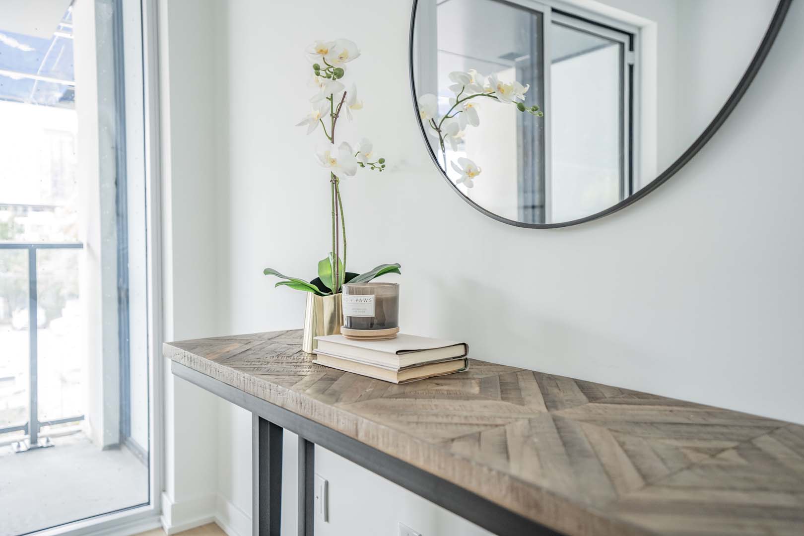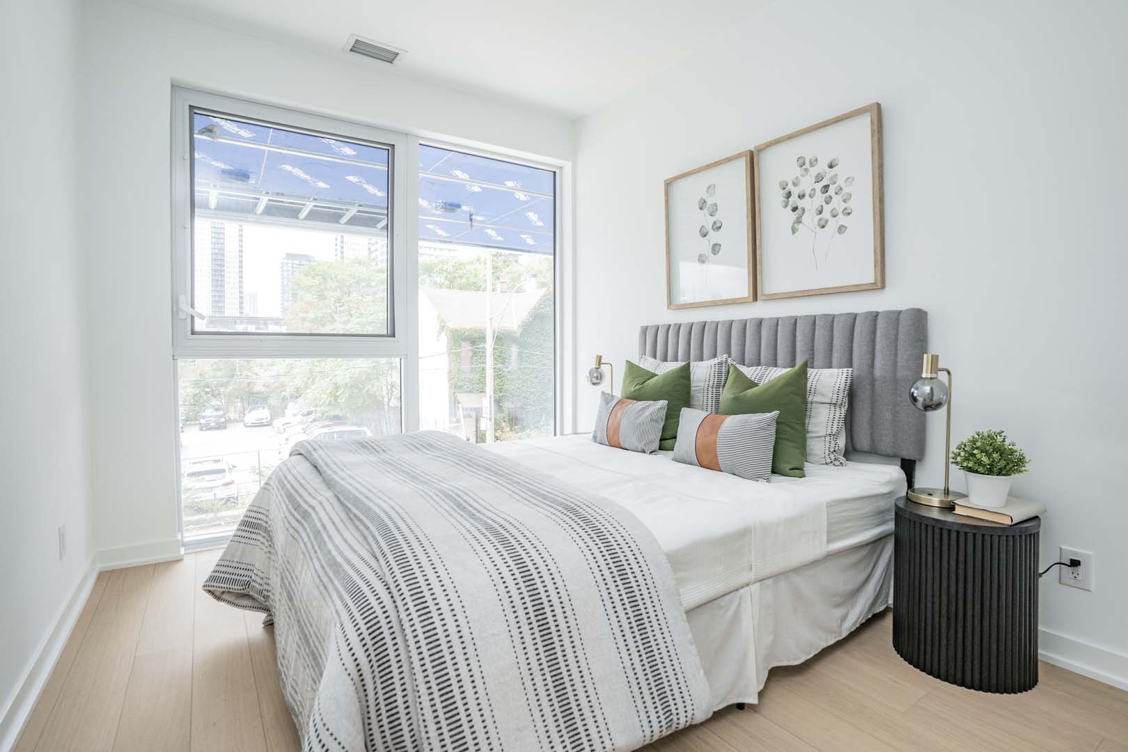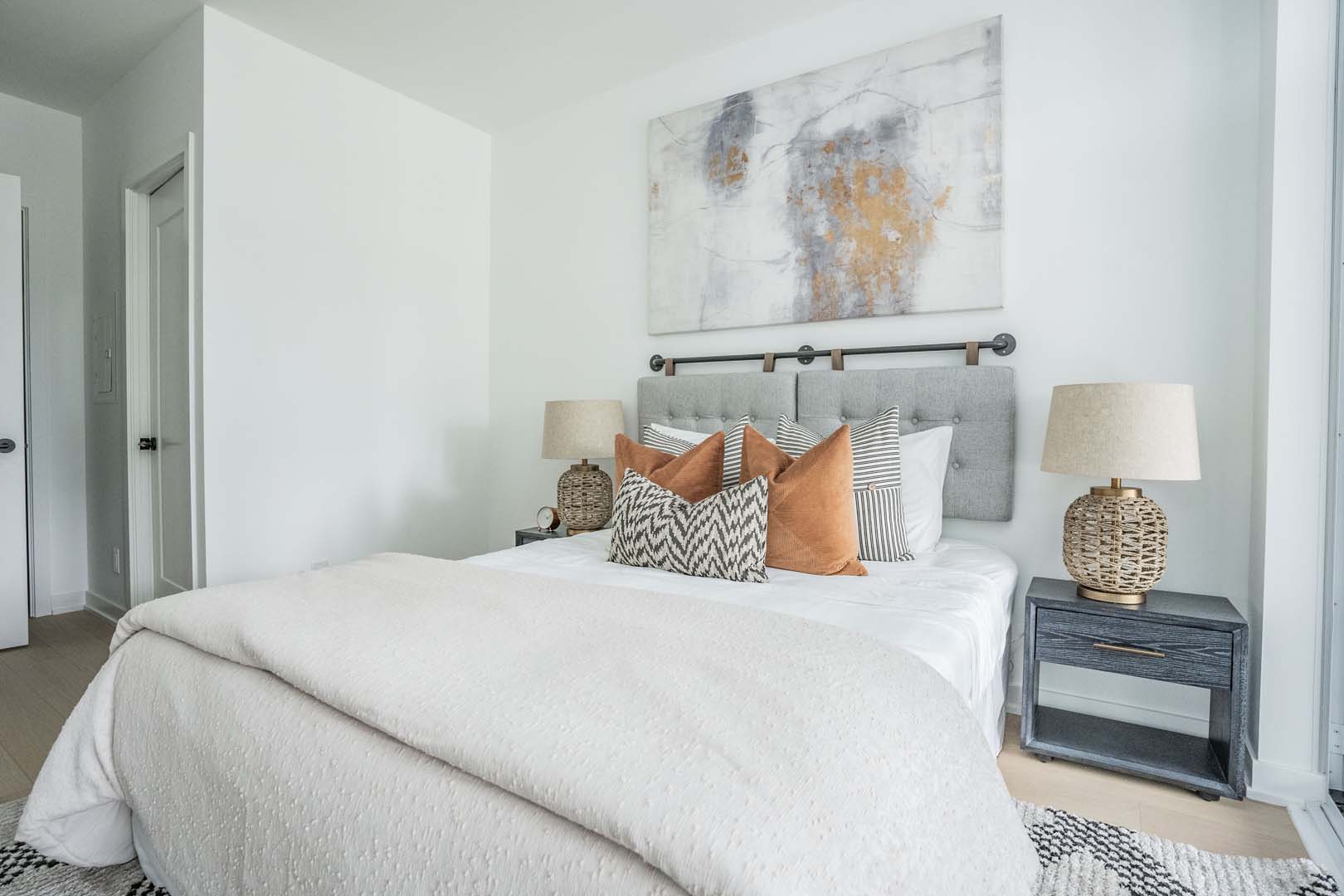 Designed for Broccolini, this 3-bedroom model suite was created with function in mind, where every square foot had to work harder. The tight layout called for a flexible solution, so we introduced a movable kitchen island that functions as a dining space while doubling as extra prep and counter area. Clean-lined cabinetry, layered neutrals, and textured accents keep the space feeling open and intentional rather than crowded. The result is a thoughtfully designed home that proves smart planning and well-scaled furniture can completely transform compact urban living.