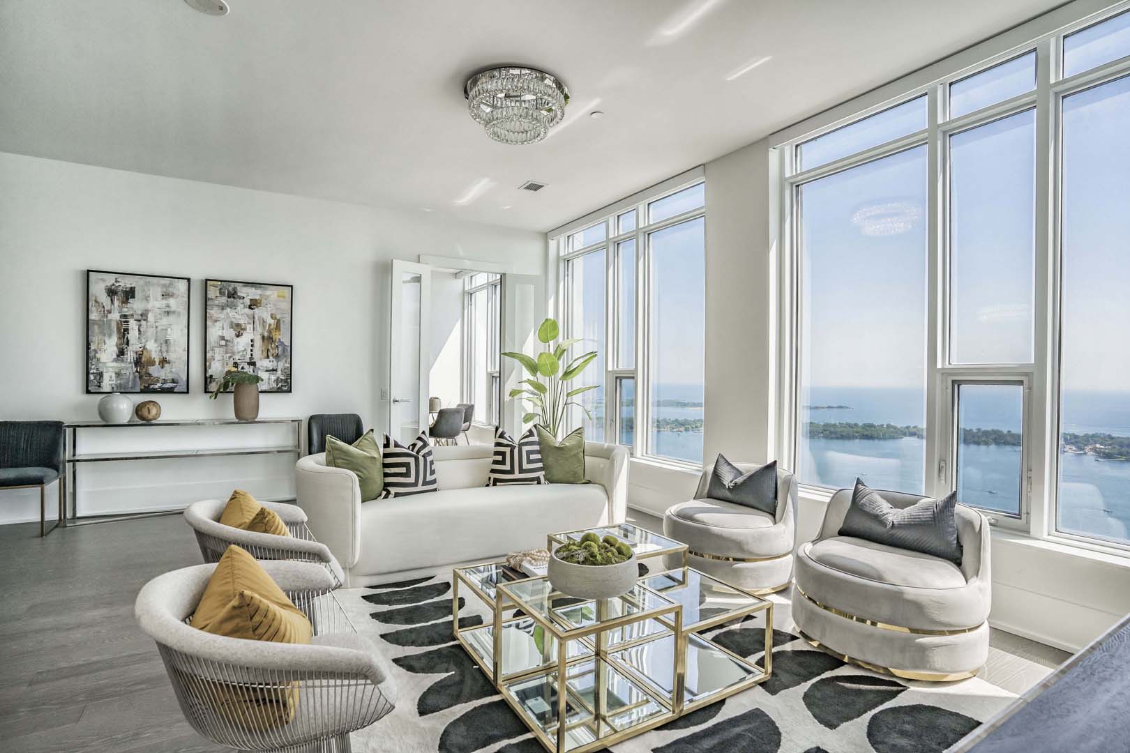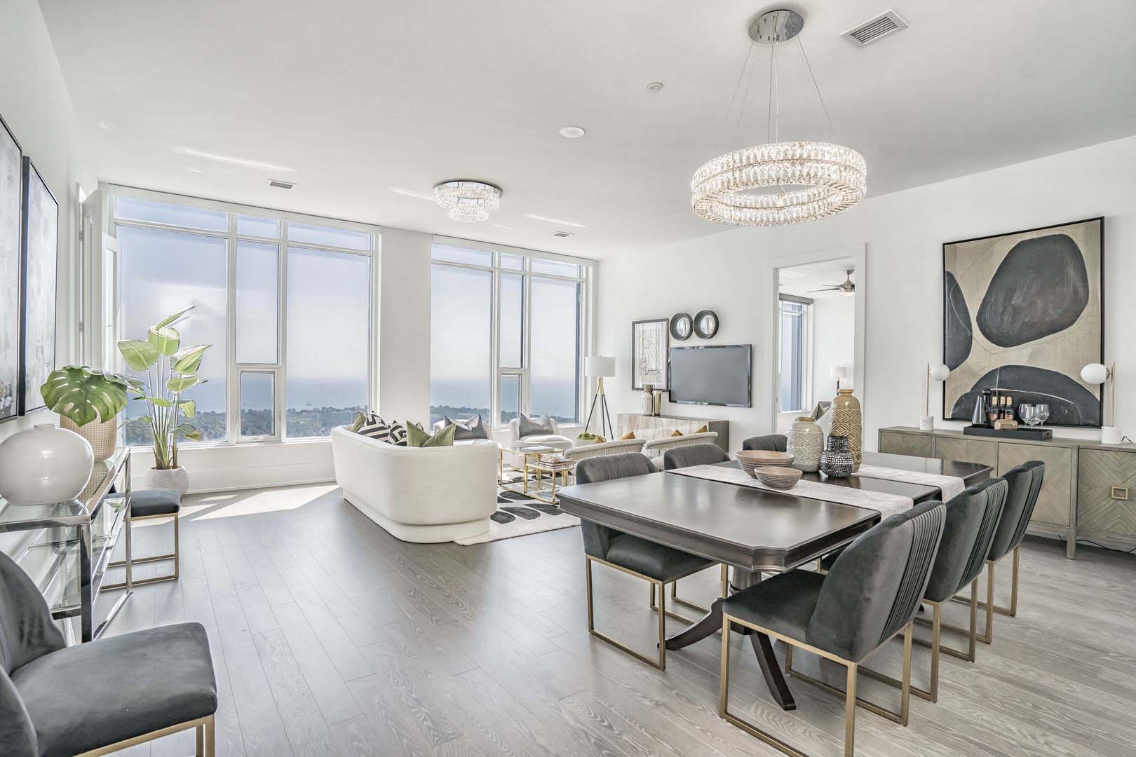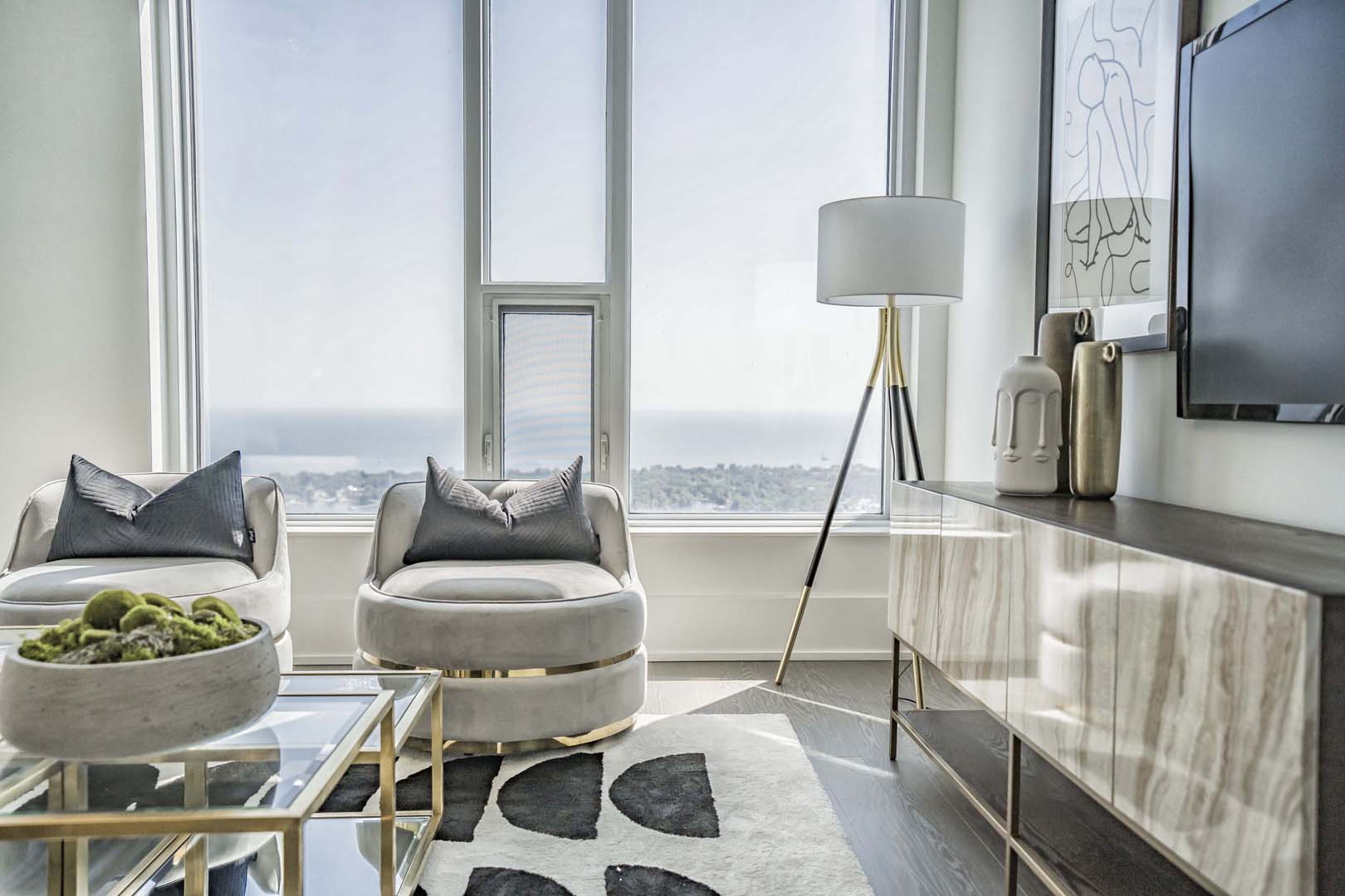 This 3-bedroom luxury high-rise needed a full reset to truly shine. We cleared out all of the client’s existing pieces—which were either too large or too small for the scale of the space—and started fresh with a cohesive, intentional plan. Clean-lined furniture, soft neutrals, and sculptural accents were layered to complement the floor-to-ceiling windows and expansive city views. Thoughtful layouts helped define each zone, from a welcoming foyer to the main living areas and serene bedrooms. The result is an elevated, aspirational home that feels polished, balanced, and perfectly tailored to its location and buyer profile.