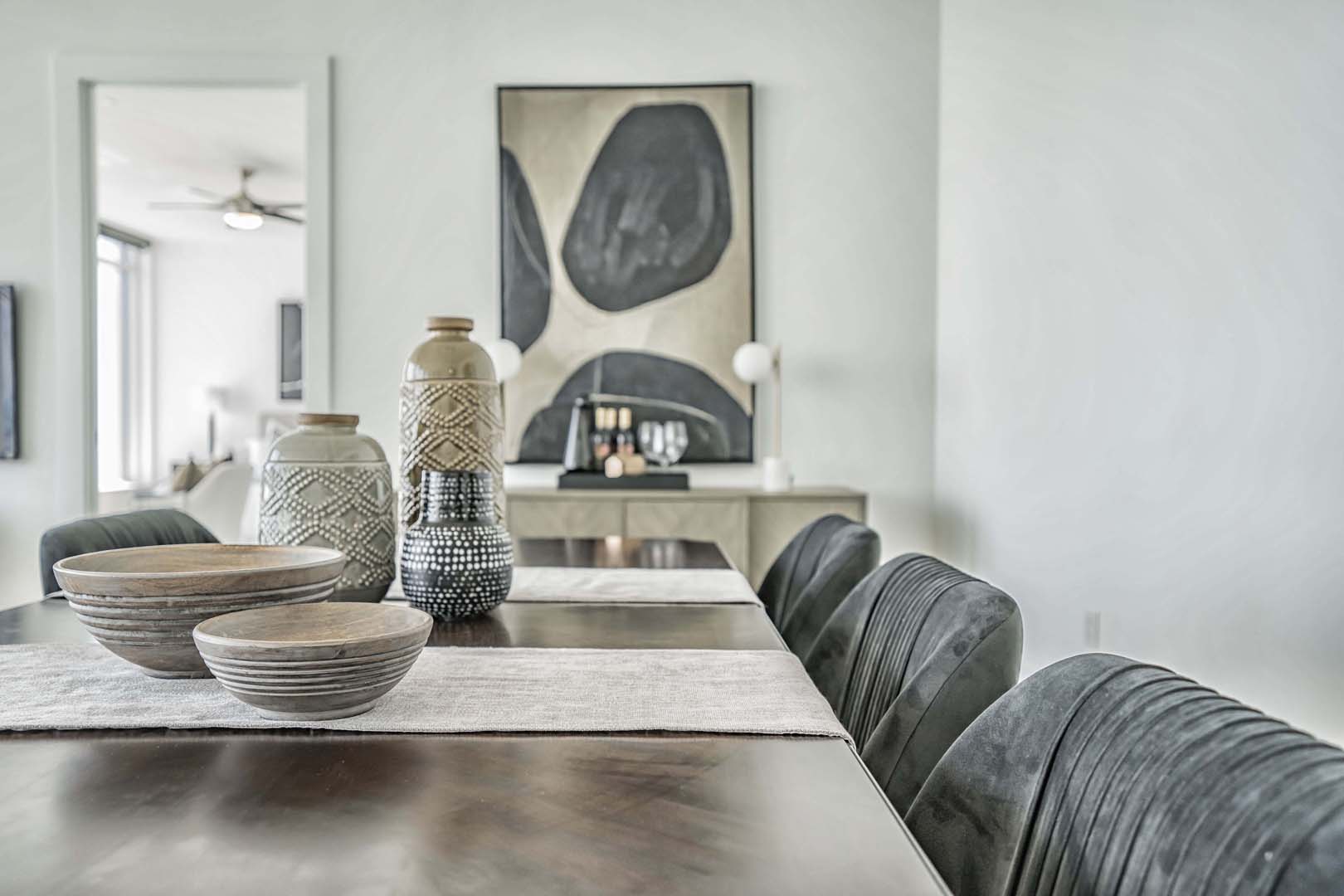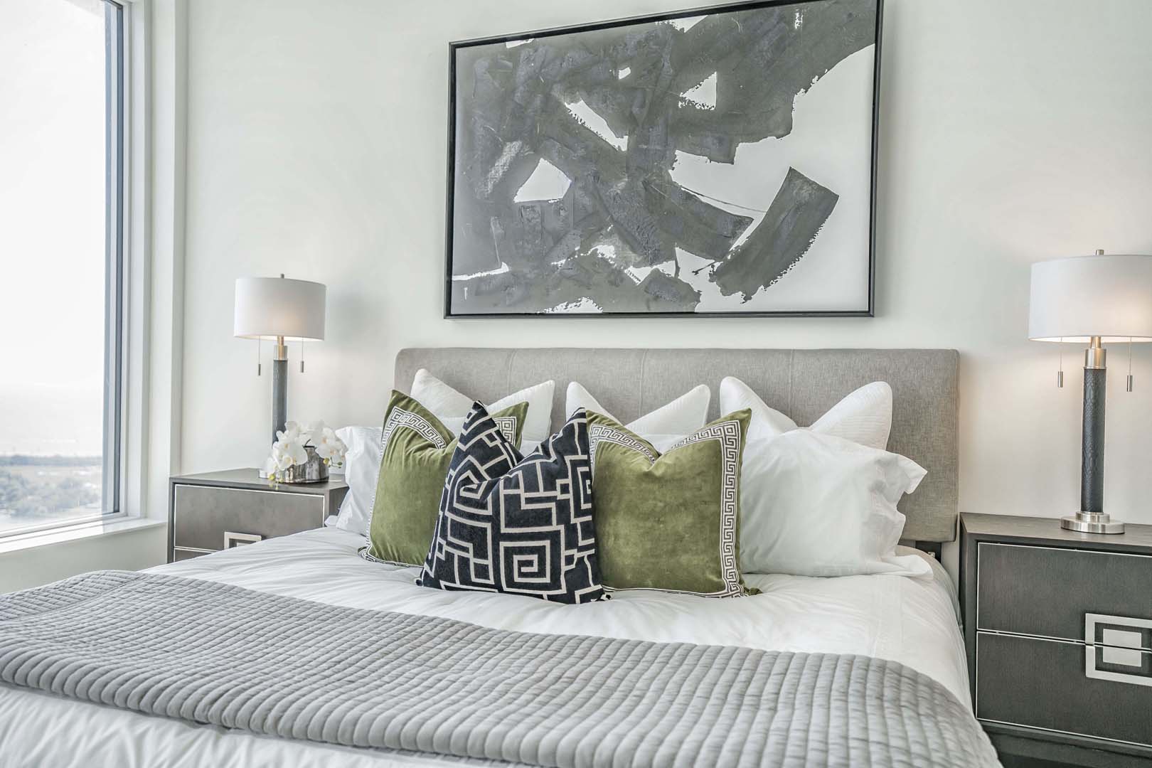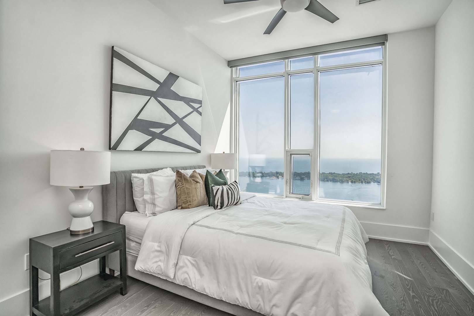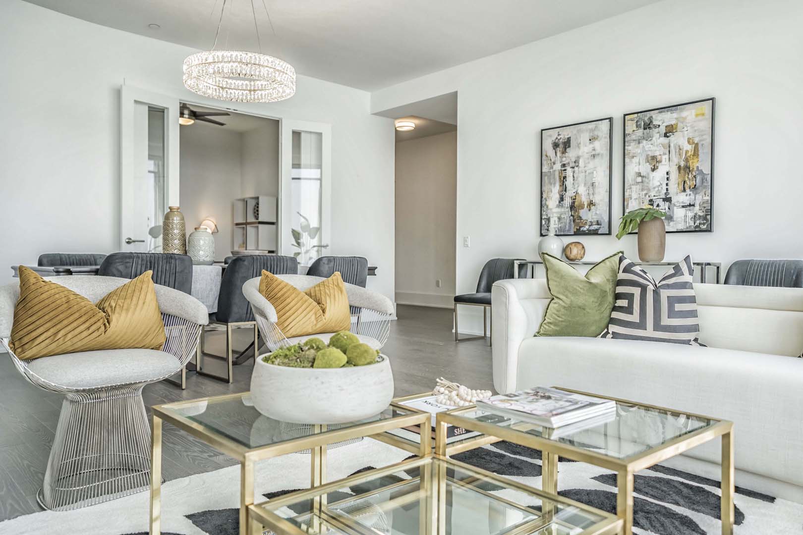 This 3-bedroom luxury high-rise needed a full reset to truly shine. We cleared out all of the client’s existing pieces—which were either too large or too small for the scale of the space—and started fresh with a cohesive, intentional plan. Clean-lined furniture, soft neutrals, and sculptural accents were layered to complement the floor-to-ceiling windows and expansive city views. Thoughtful layouts helped define each zone, from a welcoming foyer to the main living areas and serene bedrooms. The result is an elevated, aspirational home that feels polished, balanced, and perfectly tailored to its location and buyer profile.