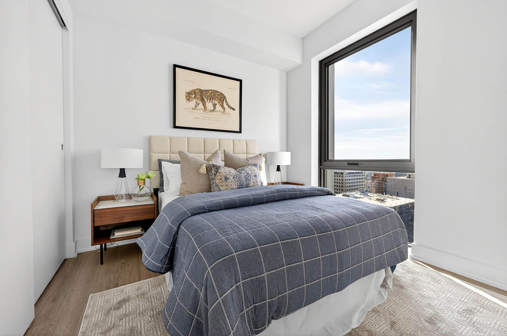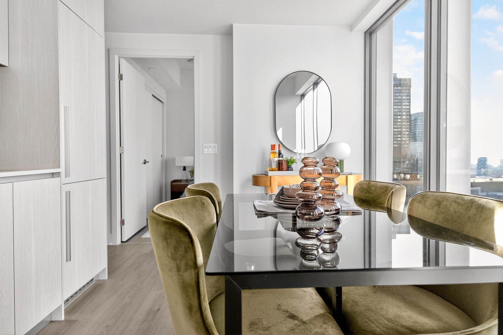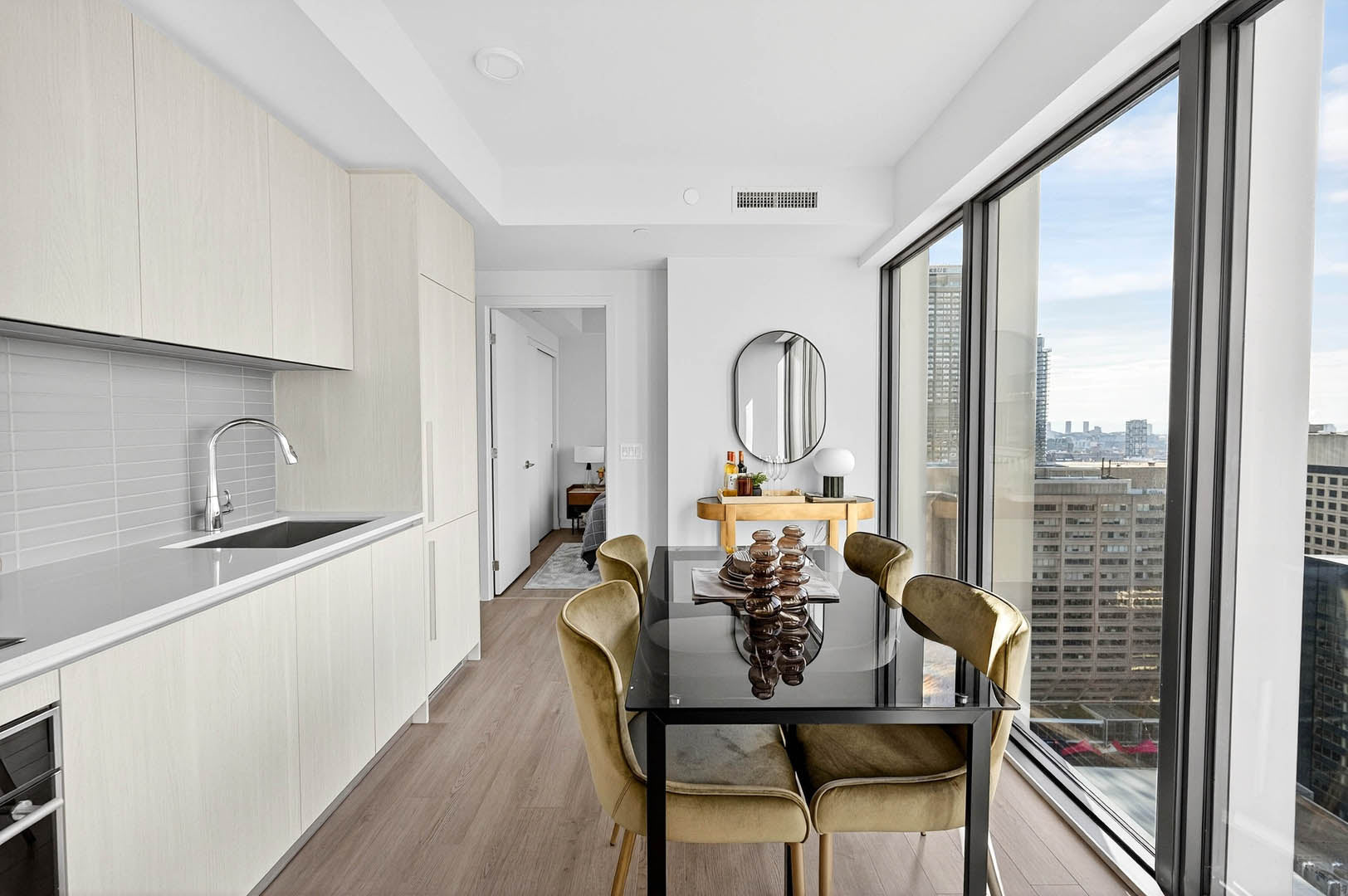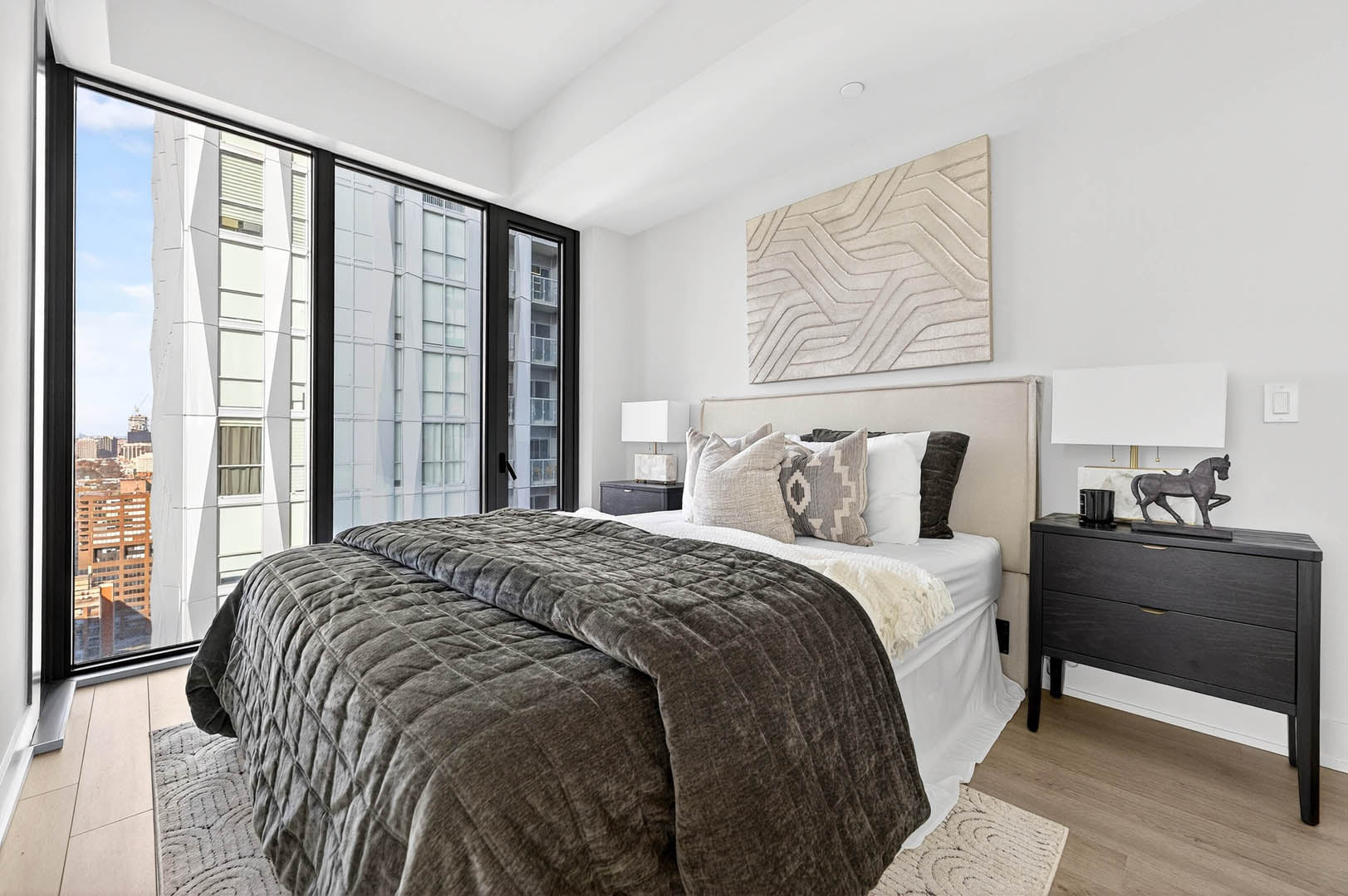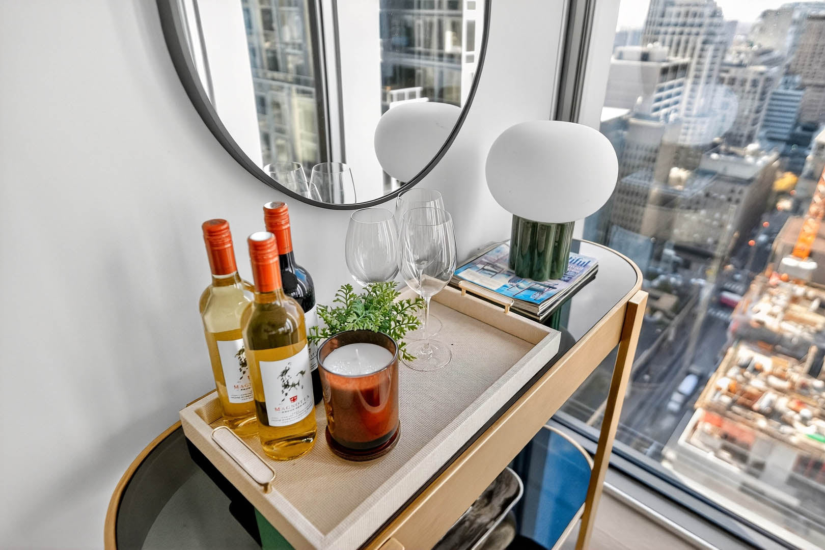 This two-bedroom model suite was all about scale, restraint, and quiet luxury—because in Yorkville, every detail needs to earn its place. We chose streamlined silhouettes and tailored upholstery to keep the main living areas feeling open, while glass, brass accents, and rich wood tones add just the right amount of polish. The furniture is intentionally compact but elevated, creating a layout that feels sophisticated without feeling tight. It’s a refined, city-forward design that looks effortless, but is anything but accidental. This model suite was presented by Great Gulf.
